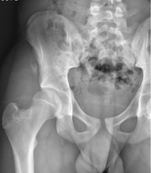 Figure 1. Initial radiograph of the right hip: epiphyseal separation of the anterior inferior iliac spine.